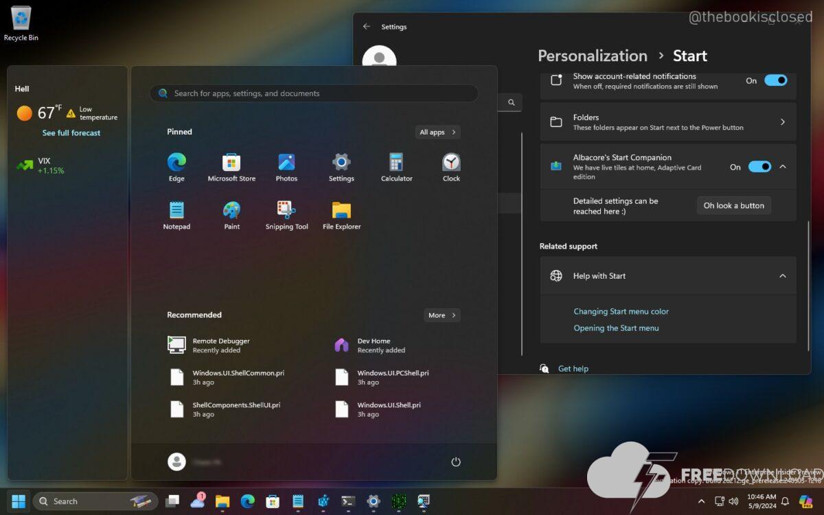 Home windows 11 ? construct 26212 quietly introduces help for “Begin Menu Companions.” They’re apps that present Adaptive Playing cards which show on a floating island (docked ?? or ??) alongside Begin